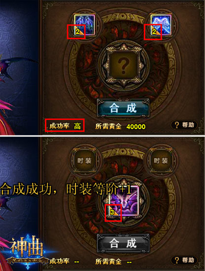 时装合成,也叫时装进阶,就是将低阶属性的时装合成高阶属性的时装。每次进阶时,只需将两个相同部位的时装分别放入两个合成槽中,点击合成即可。合成中,你可以使用一定数量“时装之魄”代替一个一阶装备。
