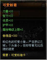 粉红小猪不只造型萌,连属性也是绝佳。且可爱粉猪兽魂一旦激活,属性就可以累加在角色原属性之上。亲们想要拥有粉红小猪坐骑吗?只要参与可爱粉猪活动,就能获得小猪坐骑哦。萌系的造型,给力的属性,还等什么,亲们,期待粉猪活动的到来吧!