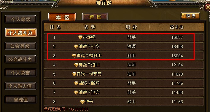 | 战斗力排名第一 | 战斗力排名第二 | 战斗力排名第三 |