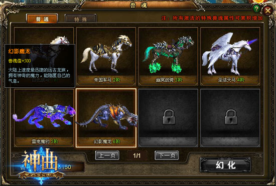 通过消耗一定的钻石,坐骑进阶之后,其属性值都会有一定的提升,外形会随着兽魂的阶级提升而改变。魔龙就是普通坐骑幻化到六阶的成品。