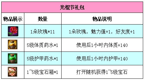活动描述:玩家在线即可获得神曲赠送的光棍节礼包