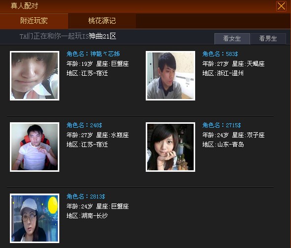 人与人之间的相遇都是一种缘,有幸相识相知则是缘的升华,人们称之为“缘分”,这是最值得我们珍惜的。今天你我都在IS神曲玩游戏却彼此不相识,IS神曲秉承“真人配对”推出了桃花源记这个真人配对的功能。点击真人配对,我们就能快速寻找到有缘人。