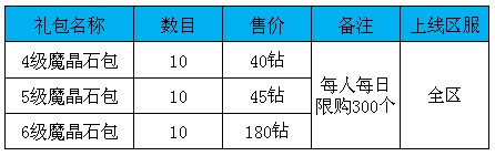 活动描述:商城上架魔晶石礼包,快快抢购!