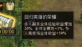 1、同时符合以下两个条件的玩家,上线即可获得增益buff“回归英雄的荣耀”: