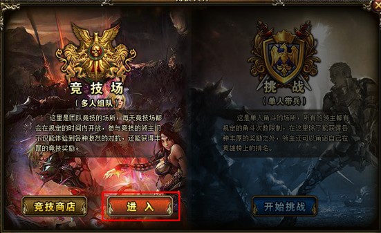 每天竞技场会在每天都十二点和十八点定期开放,每个时段持续两小时,每人每天前30场竞技可获得收益。玩家可以单独进入或组队前往,经过系统匹配进行3v3的竞技战斗。胜利的一方每人可获得十五个勋章和十五跨服积分奖励。勋章可在竞技商店中换取竞技场套装、荣誉勋章、药水、经验书和史诗碎片等。而跨服积分则是领取战神宝箱和获得炫目称号惊天斗神的必备条件。