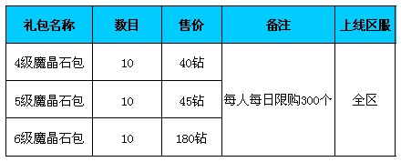 活动描述:商城上架魔晶石礼包,快快抢购!