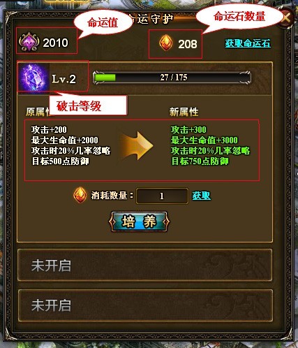 命运石:通过消耗“命运石”可以提升玩家命运守护中各技能等级。
