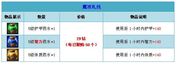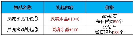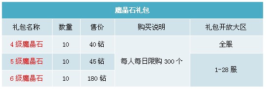 活动内容:商城上架魔晶石礼包,快快抢购!
