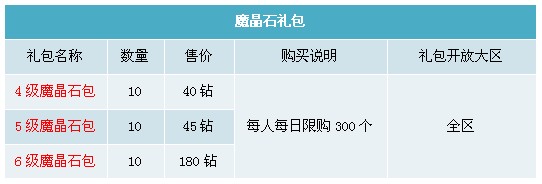 活动内容:商城上架魔晶石礼包,快快抢购!