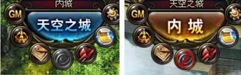天空之城将原有的悬赏大厅、竞技场、英雄之门和拍卖行汇集到了一起,转移到了天空之城的中心广场之上,以崭新的NPC的形式出现,功能和用途保持了原有版本的优势之处,场景和画面却更加优美亮丽。原有的地图按键位置就是现在天空之城和玩家内城的切换按键,玩家可以在非副本的场景中任意的往来于内城和天空之城之间。并且新增添了一个按钮,位于外圈按钮的最中间,是可以在天空之城中屏蔽其他玩家图像的按键,单击屏蔽之后在天空之城里就不出现其他玩家的图像,但是仍然能看到玩家昵称。
