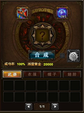 时装合成概率分为:100%、高、中、低。当两个同阶时装合成时可采用幸运符让成功率保证为100%。