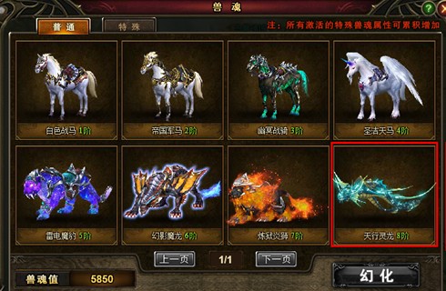 首先,神曲坐骑分为普通兽魂和特殊兽魂。普通神曲兽魂可通过喂马来提升等阶。1阶坐骑是系统赠送的白色战马,2阶是帝国军马,3阶是幽冥战骑,4阶是圣洁天马,5阶是雷电魔豹,6阶是幻影魔龙,7阶是炼狱炎狮,而8阶就是可以翱翔于天际的天行灵龙了。