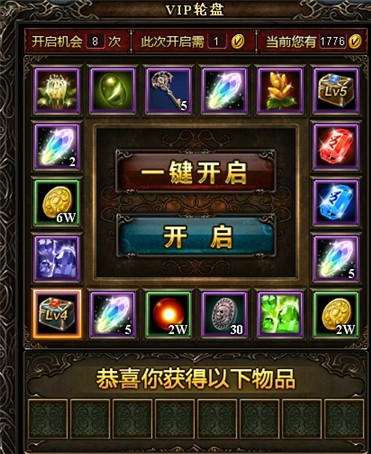 既然说到坐骑培养就不得不说一下兽灵石,也就是坐骑培养的主要道具。兽灵石来源有很多,比如公会战,公会宝箱、每日活跃度、公会祈福等等。而VIP玩家更是可以通过VIP转盘获取兽灵石。下面就介绍一种VIP币换取兽灵石的技巧。当VIP转盘盘面上有如下图所示这样,两个5兽灵石,一个2兽灵石和一个1兽灵石的时候,通过消耗28~36个VIP币即可获得8个兽灵石。注意一定要是1、2、5、5的时候才可以转哦,1、2、5的时候是很不稳定的。