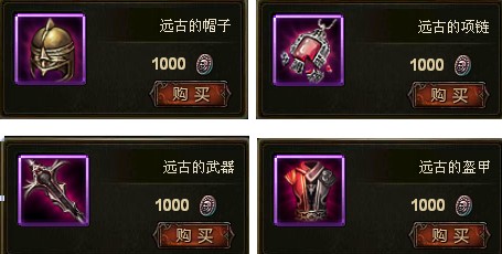 分为:远古的帽子、远古的项链、远古的武器、远古的盔甲。