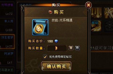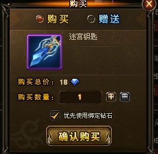 1、商城:推荐在商城中购买迷宫钥匙、双倍经验卷轴、马卡、时装。在这里,玩家一定要注意,使用绑定钻石购买的物品也是绑定的,同时是不可以使用绑定钻石赠送其他玩家物品的。在商城中:VIP会员卡和精灵盟约是不可以使用绑定钻石购买的。