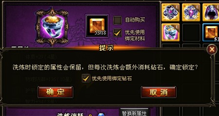 3、装备洗炼:洗炼装备时,锁定属性是需要消耗钻石的,而玩家都知道,想要洗出极品属性的装备,锁定属性是必须的。