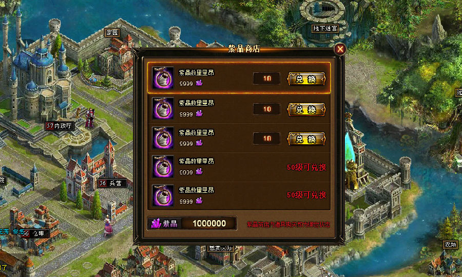 兑换奖励NPC位于天空之城,玩家通过系统获得“紫晶”,在此兑换获得以下各类奖励