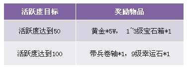 【活动内容】活动期间,活跃度达到指定目标,即可到“精彩活动”领取相应的活跃礼包。