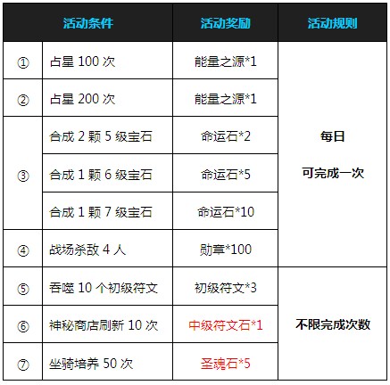 2. 活动⑤~⑦任务不限完成次数,多参与多获得;