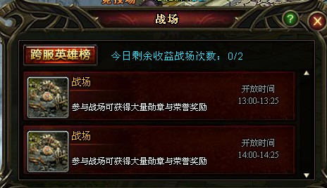 迈出了竞技场这第一步,接下来将能体验到的,就是战场。在“战场”中,击杀玩家将累积跨服积分,并且能获得荣誉。此外,在战场中玩家可以采集矿资源,人人都可拾取,60个矿碎片即可合成1个战场宝箱,有很大的机率开出3级宝石,奖励诱人。