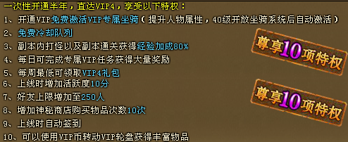 活动描述:端午佳节,VIP半年卡9折优惠出售,领取10项特权助您快速升级。