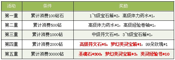 3、每重奖励玩家只能领取一次,奖励在精彩活动处领取;