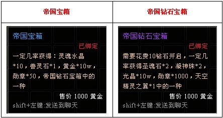 活动描述:活动期间单人副本,多人副本,地下迷宫,深渊迷宫击杀NPC,每次随机获得帝国宝箱1个