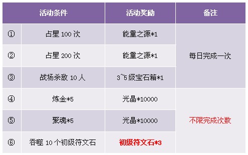 1. 活动①~③任务每日可完成一次;