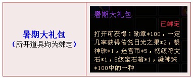 3、活动获得奖励均为绑定;暑期大礼包有几率获得英灵凝神珠*1,或英灵凝神珠*100;