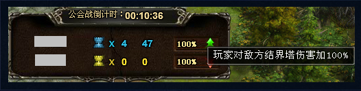 已经占领4个副塔(神秘塔),玩家对结界塔造成伤害提升100%,如下图所示: