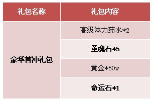 【活动内容】活动期间,玩家充值任意金额即可获得超值礼包一份。