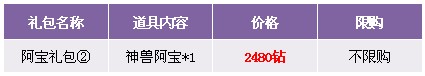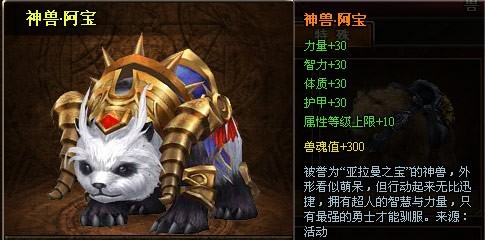 活动内容:活动期间期间,商城出售超值“神兽-阿宝”,传说中的国宝哦!