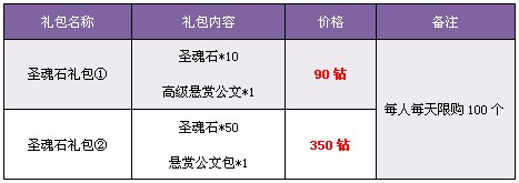 【活动内容】商城上架圣魂石礼包,圣魂石,高级悬赏公文特惠回馈,限时抢购!