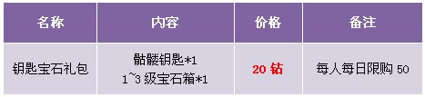 【活动内容】活动期间,商城促销骷髅钥匙和1~3级宝石箱,开启副本宝藏的钥匙限时火热抢购中。