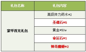 【活动内容】活动期间,玩家充值任意金额即可获得超值礼包一份。