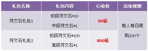 【活动内容】活动期间,商城上架符文石礼包,特大优惠回馈曲友。快来提升你的符文等级,将战力提升进行到底!