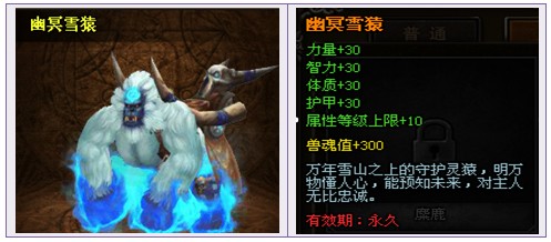 3.获得幽冥雪猿坐骑可兑换相同属性坐骑(阿狸除外),在活动奖励发放后联系平台客服更换。