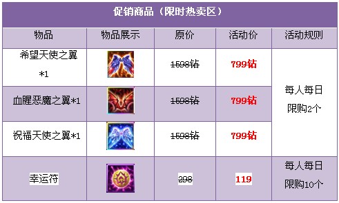 活动二、帅气翅膀5折出售 幸运符4折大甩卖