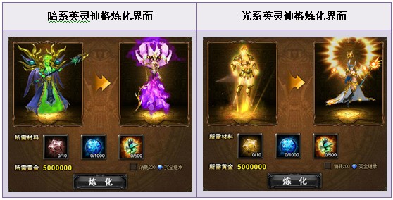 【活动描述】活动期间,商城限时热卖神格宝箱,可开出稀有炼化合成材料“神格碎片”。远古英灵盖亚与雅典娜的召唤,强大的力量震颤人心,令天下勇士魂牵梦绕。炼化你的光暗英灵,成就神级传说!