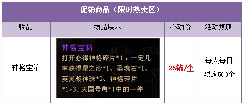 1. 优惠礼包在商城“限时热卖区”出售;