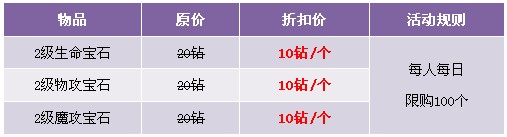 1. 宝石五折购买仅在“商城限购”区域,宝石专区购买不打折;
