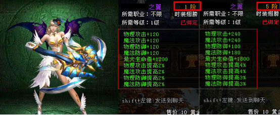 翅膀进阶到5阶 | 时装之魄*40 |