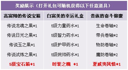 【活动内容】诸神降临期间,商城出售超值战力大礼包,卷轴礼包。