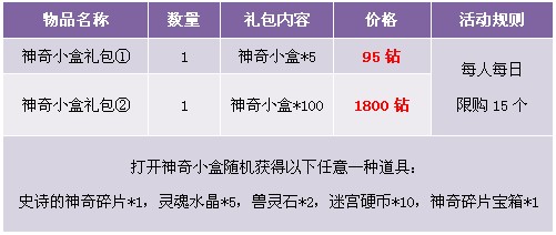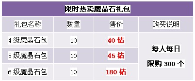 【活动内容】活动期间,商城上架魔晶石礼包,