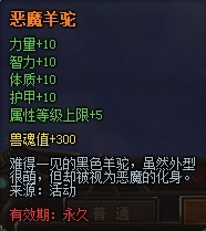 【活动内容】活动期间,商城出售“恶魔羊驼”坐骑。勇士的象征、猛将的伴侣,快来带回你的阵营!