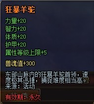 【活动内容】活动期间,商城出售“狂暴羊驼”坐骑。呆萌不失威严,狂暴羊驼不走寻常路!