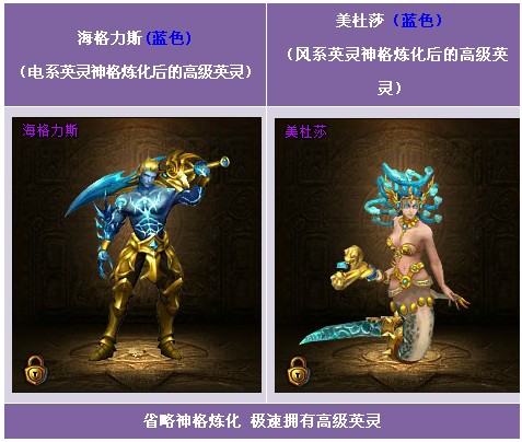 3. 温馨提示,魔罐开出的封印珠资质均为蓝色,海格力斯为电系英灵神格炼化后的英灵,美杜莎为风系英灵神格炼化后的英灵,均要求领主等级大于等级70级即可携带。