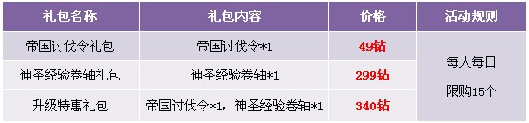 活动一、帝国讨伐令+神圣经验卷轴