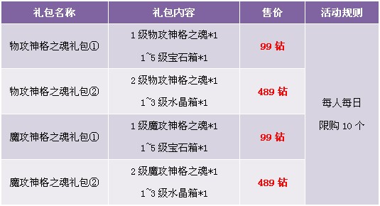 【活动内容】活动期间,神格之魂礼包特价出售。早已不能满足当前的脚步,还有更高远的巅峰待追求,英灵装备的点睛力作神格之魂,提升英灵战力,征战众神。