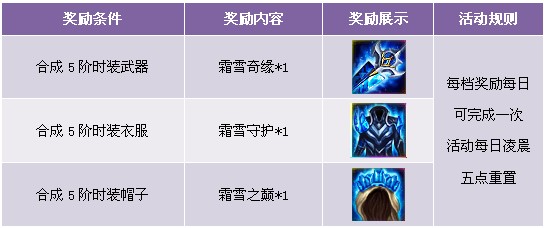 【活动内容】活动期间,合成5阶时装即可获得霜雪系列时装。冷艳酷炫,值得你拥有。